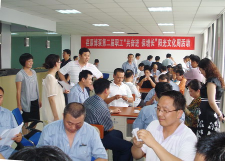 為不斷活躍和豐富員工的業(yè)余文化生活,增進(jìn)員工間的交流與溝通,增強(qiáng)員工的團(tuán)隊(duì)意識,7月20日――30日,公司工會組織開展了第二屆“共奮進(jìn) 保增長”陽光文化周暨撲克牌夠級比賽和象棋比賽。