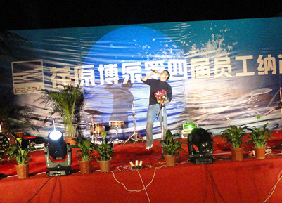 18:30分,晚會節(jié)目正式開始,首先在晨曦樂隊激情飛揚(yáng)的搖滾歌曲聲中拉開了晚會的序幕。晚會節(jié)目有獨(dú)唱、小合唱、舞蹈等等,演員們的精彩表演,博得了員工們陣陣掌聲和喝彩。特別是生產(chǎn)部門女職工排練的舞蹈,動感十足,展示了女員工的多姿多彩的精神風(fēng)貌。常務(wù)副總經(jīng)理王正軍的一曲豪邁的《紅旗飄飄》,抒發(fā)了荏原博泵員工的愛國情懷;北京事務(wù)所的王信東部長帶來了抒情歌曲《別問》;王虹權(quán)、袁磊、趙喜鵬、周新菊、肖旭、竇群、蔣祺、張雷雷、徐道義、董旭光等員工先后表演了自己準(zhǔn)備的節(jié)目;職工子女表演的拉丁舞更是把晚會的氣氛推向高潮。
