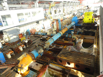 1000cm×900cm的大型臥式雙吸離心泵測(cè)試現(xiàn)場